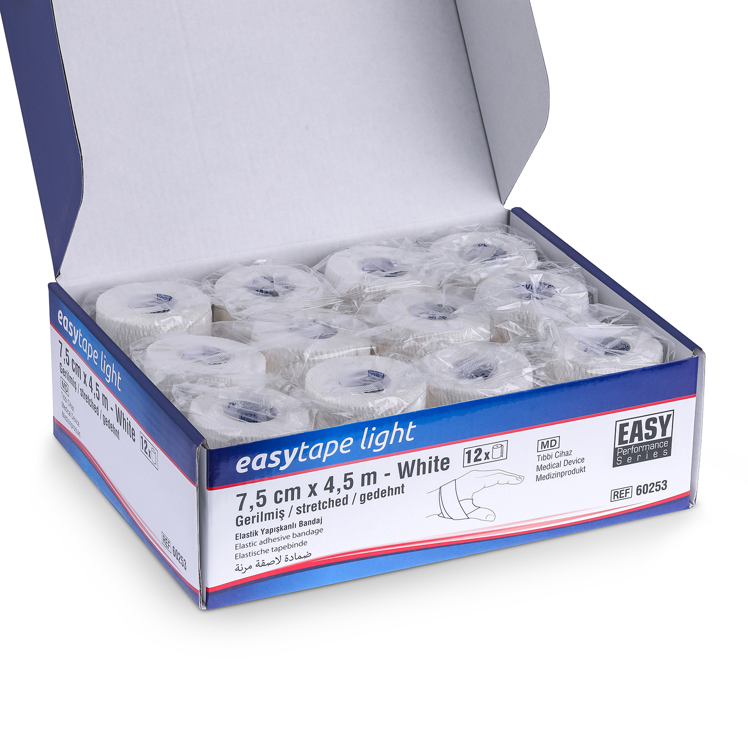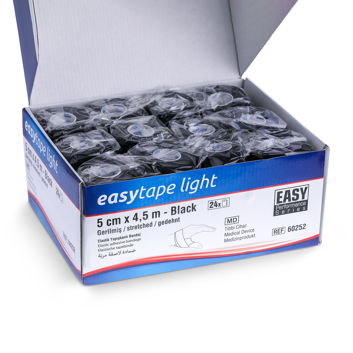 EASYTAPE LIGHT ®, pamuk ve poliüretan karışımı özel formülüyle, kas ve eklemlere ihtiyaç duyulan güçlü desteği sağlarken hafifliğiyle üstün konfor sunan, elle yırtılabilir elastik yapışkanlı bir bandajdır. Uzun süreli tedavilerde dahi mükemmel yapışma performansını korur. Hava geçirgen yapısı sayesinde cildin nefes almasını sağlayarak maserasyon (cilt yumuşaması) riskini önler. Burkulma ve incinme tedavilerinden spor yaralanmalarının önlenmesine (profilaksi), pansuman sabitlemeden varis ve ülser için kompresyon (basınç) uygulamalarına kadar geniş bir kullanım alanına sahiptir.